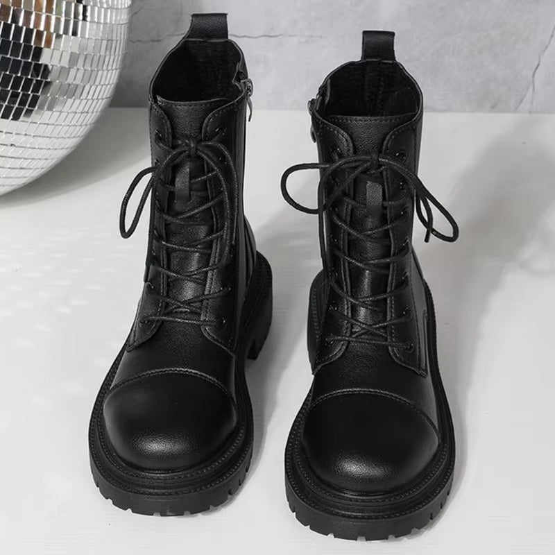 Ces bottines à crampons pour femme très tendance sont vos définitives alliées pour affirmer votre allure atypique et urbaine. Elles sont particulièrement mises en valeur lorsqu'elles sont associées à un legging en cuir ou à un jean slim de style rock. Portées avec une petite robe ou une jupe steampunk, elles mettent vos mollets en valeur.