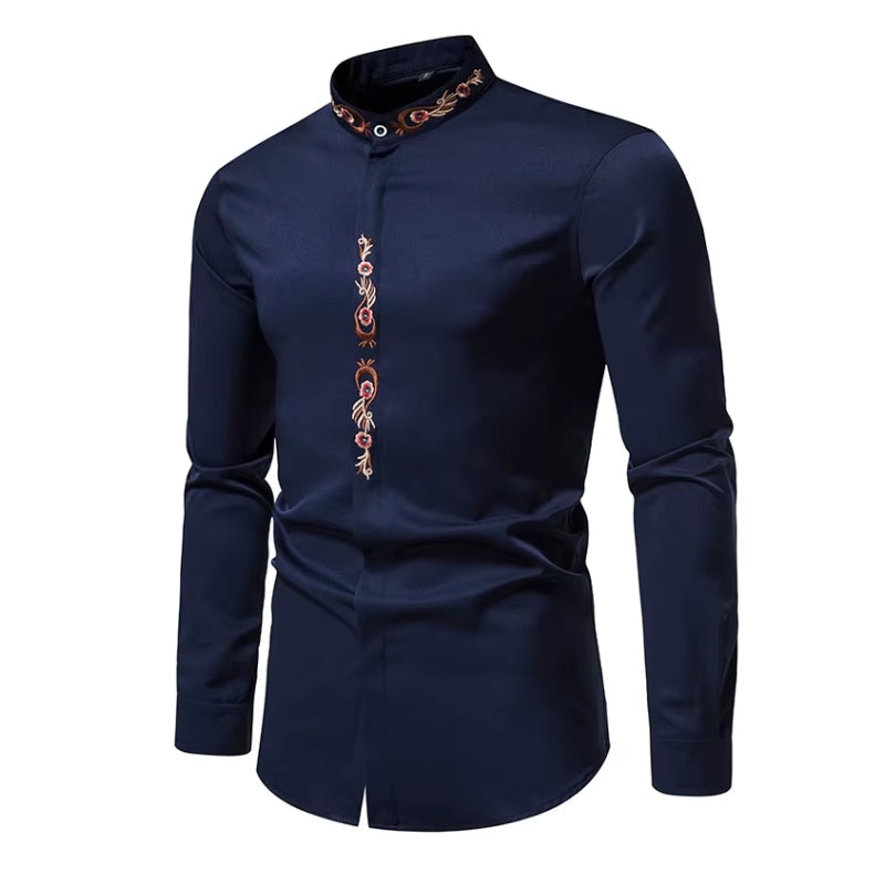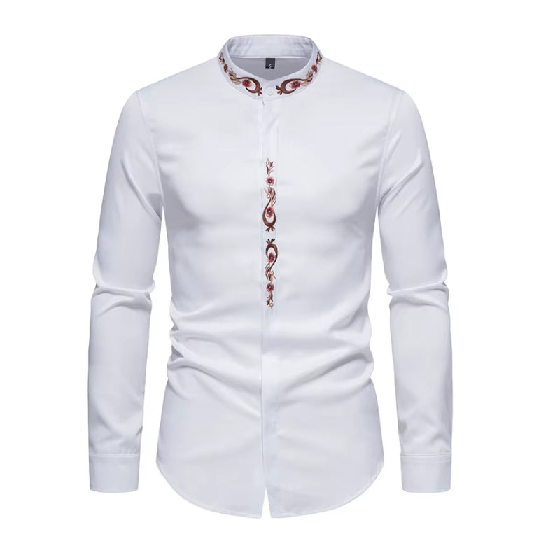 Découvrez l'originalité avec notre Chemise à Col Mao Brodée