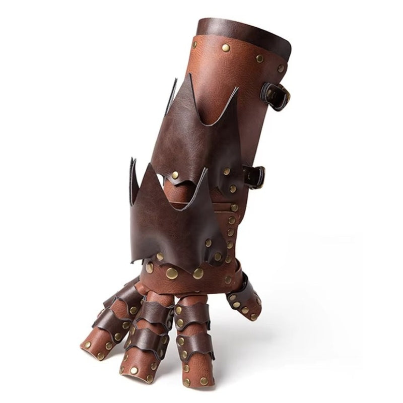 Unique en son genre, ce gantelet steampunk noir ou marron, a un design vraiment original. En effet, ce gantelet est sublimé subtilement de part et d’autre par quelques morceaux de simili / PU couleur et rivet type clous.